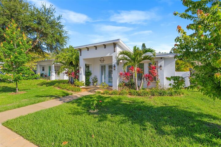 The design and layout of this home is ideal with all the bedrooms being separate from one another. The 3rd bedroom/office has two closets and plenty of natural light at the front of the home. The guest bedroom is on the other side of the home and the guest bathroom is just off that bedroom. The guest bathroom features luxurious finishes with a seamless transition to the shower, glass wall, marble tile all the way to the ceiling, a built-in niche, an oversized single vanity with sink, and a backlit LED mirror. There are two sets of French doors leading to the backyard that is meticulously landscaped everywhere you turn, upgraded white vinyl fencing, a multi-zone irrigation system on well, alley access with a double swing gate, and a parking pad. The owner has plans for a garage with an ADU above it as well that would sit on the northeast corner of the back of the property. This home is all block construction with hurricane impact-rated windows and doors, a hip-style roof, and outdoor lighting in the front and back of the home. Additional upgrades include a built-in internet mesh system with repeaters that ensures high-quality internet access, LED lights throughout, crown molding in the tray ceilings in the main living spaces with uplighting in the living room tray ceiling, and high-end vinyl plank in the main living spaces and front bedroom/office. Within a 10-minute walk, you'll find Tropicana Field, numerous restaurants, a Publix, and three major hospitals nearby. A mile away, explore the waterfront, USF St. Pete, vibrant downtown, including the artsy EDGE district, Innovation district, and Warehouse Arts district. The nearby Campbell Park's amenities include a park, tennis courts, a community pool, and much more. The Pinellas trail is a short distance away as well. Come see all this home and neighborhood has to offer.